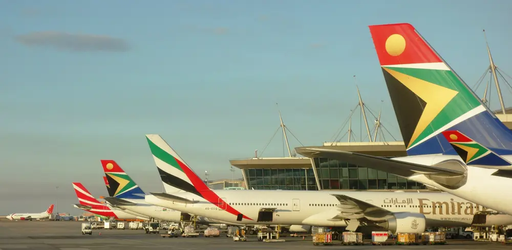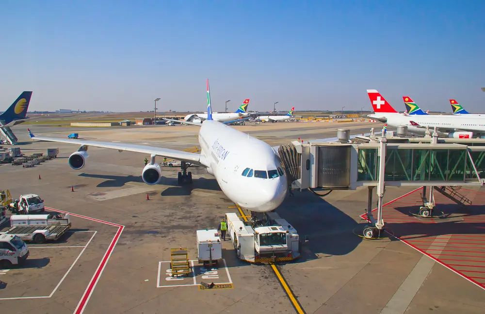 L'Aeroporto Internazionale O. R. Tambo si trova a circa 20 Km dalla città di Johannesburg e offre collegamenti per destinazioni nazionali e internazionali. E' l'aeroporto più grande (con una capacità di 28 milioni di passeggeri all'anno) e il più trafficato dell'Africa (oltre 21 milioni di passeggeri l'anno). Gestisce collegamenti diretti verso tutti i continenti ed è l'Hub del più grande vettore internazionale e nazionale del Sud Africa, la South African Airways (SAA).