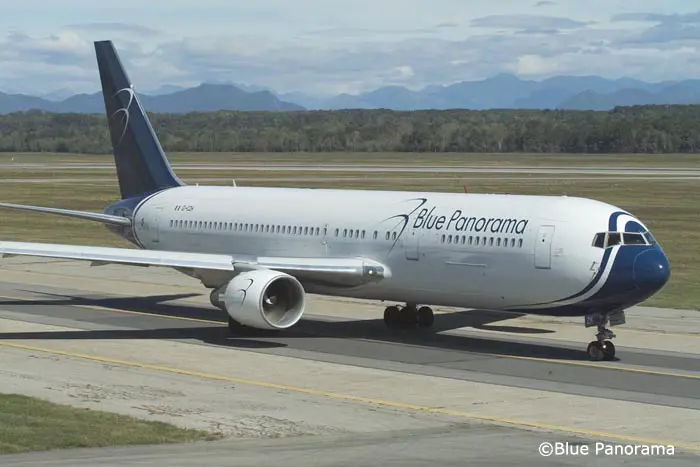 Blue Panorama opera con una flotta di Boeing 737 e Boeing 767-300 Extended Range, allestiti in due classi di servizio (Business ed Economy).