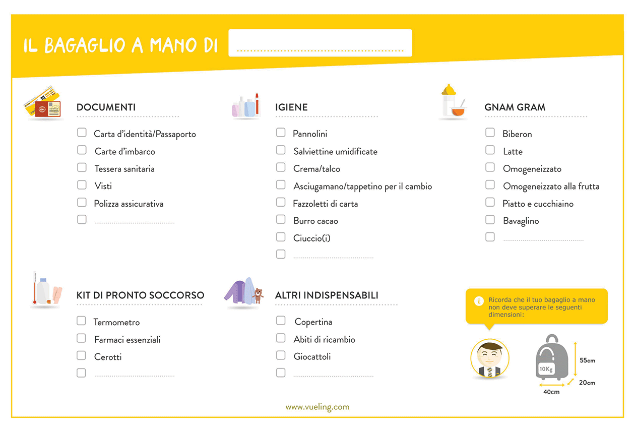 Vueling propone una lista utile per non dimenticare nulla. Scarica e stampa la lista del bagaglio a mano di Vueling