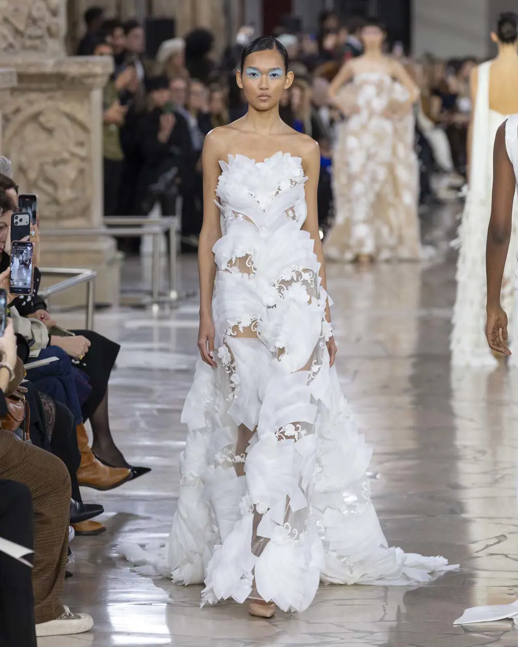 Silhouette potenti, eleganza drammatica e intimità couture convergono in una visione contemporanea che ridefinisce l’idea della parigina moderna: sicura, disinvolta e risolutamente moderna.